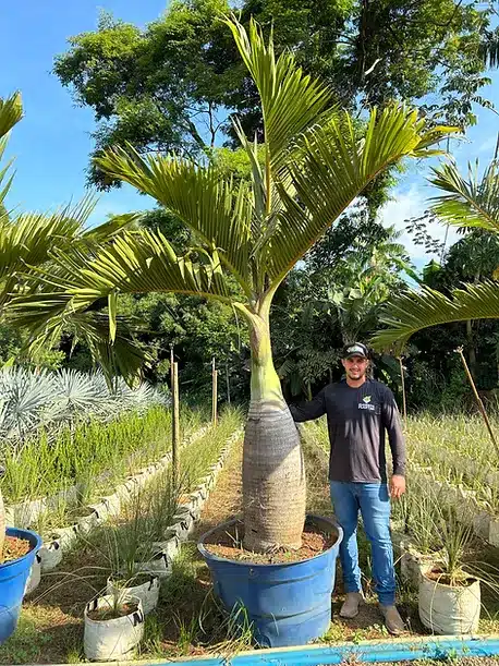 A Palmeira Garrafão é uma espécie única e extremamente valorizada no paisagismo por seu tronco em formato de garrafa, que lhe confere um visual exótico e sofisticado. Originária da Ilha Rodrigues, no Oceano Índico, esta palmeira é perfeita para quem deseja adicionar um toque tropical e exclusivo a jardins e áreas externas.